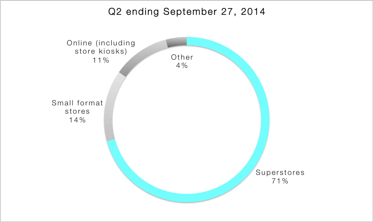 Small stores growth is driven by individual opportunity (i.e. expanding paper category where successful, adding toys where there isn’t competition in the mall, etc.) they aren’t yet part of a larger transformation strategy. With 2.3 percent revenue growth, it isn’t something to be worried about yet.